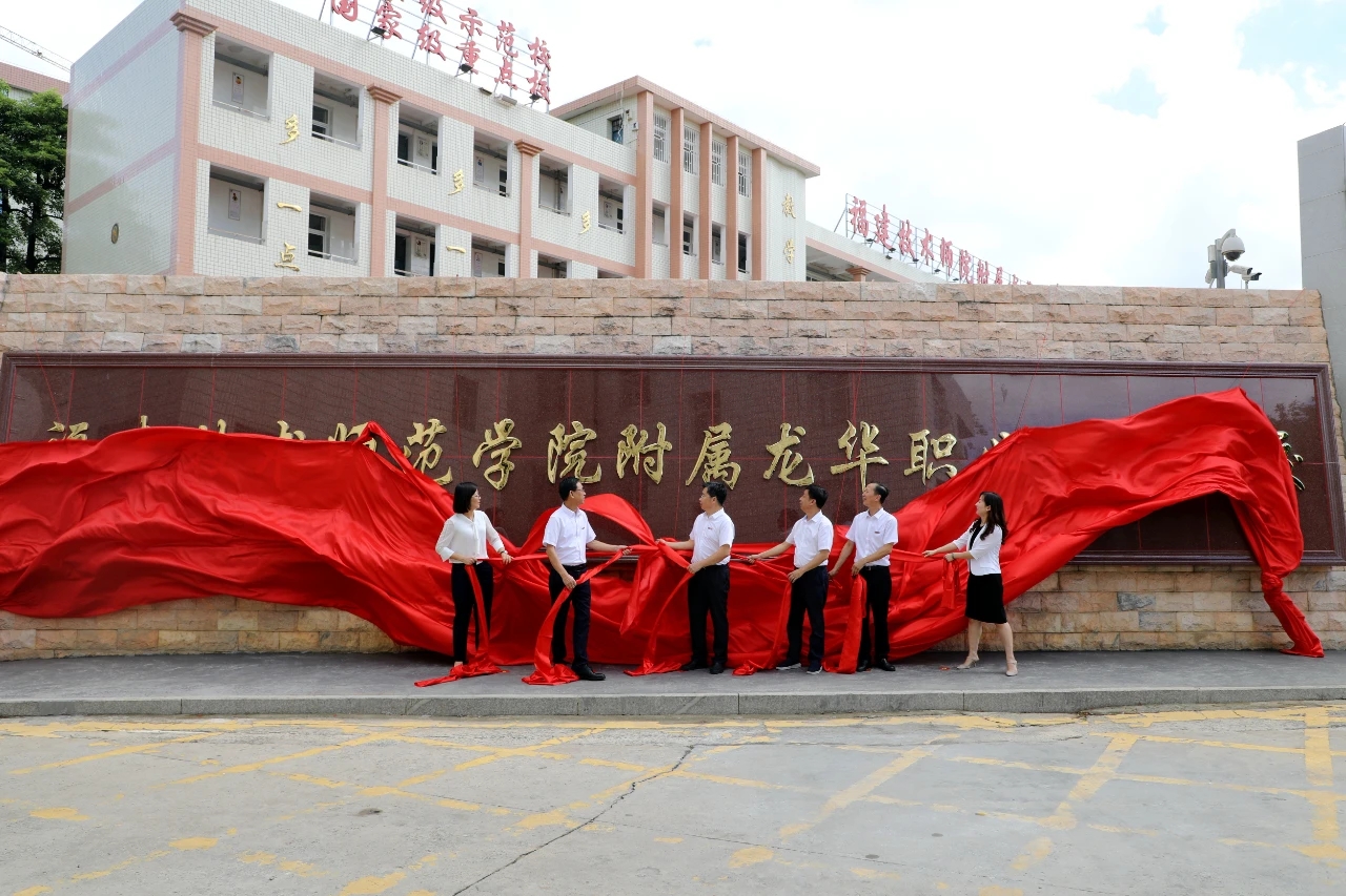 廖深基校长与吴永忠代市长等领导共同为福建技术师范学院附属龙华职业技术学校揭牌。