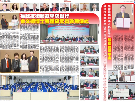 11.《福建技术师范学院举行俞文娟博士客座研究院敦聘仪式》、《福建技术师范学院与印尼福建社团联谊总会、印尼国际日报签署合作备忘录,熊德龙捐100万人民币设立“熊德龙奖学金”》,《印度尼西亚日报》通版报道
