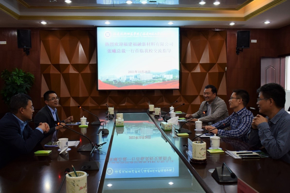 10月26日下午,福建福融新材料有限公司总裁张曦、人才发展中心总经理曹雪飞等一行5人来我校考察交流。副校长陈志勇,教务处、材料与环境工程学院相关负责人和教师代表参加了座谈会。