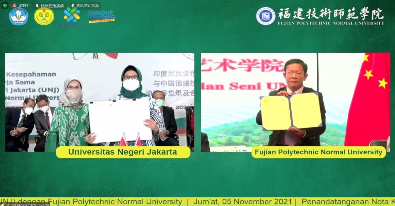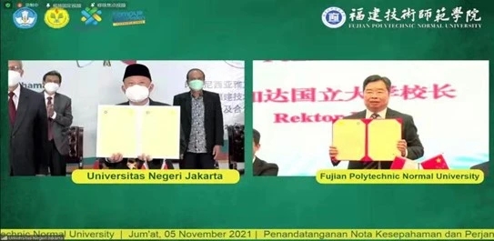 11月5日上午,我校通过视频连线方式与印尼雅加达国立大学签署协议备忘录,携手推进中印尼两国文化交流合作和人才培养。