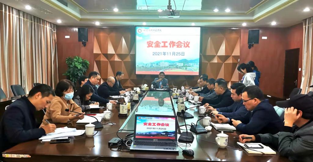 11月25日下午,我校在科学楼综合会议室召开安全工作会议。校党委委员、副校长商光美,党政办公室、统战部、学生工作部、教务处、后勤管理处、安全保卫处(武装部)、信息技术中心等部门主要负责人,以及各教学单位党组织主要负责人参加了会议。