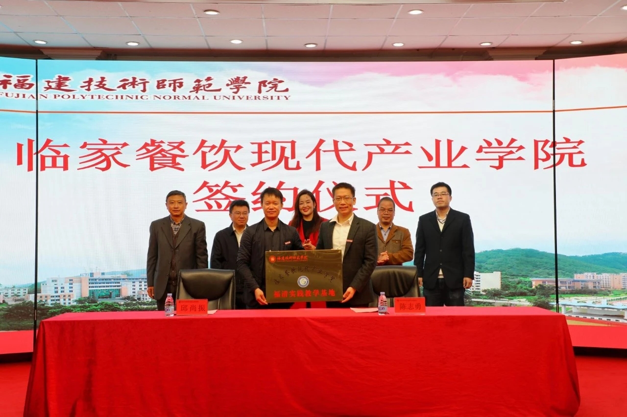 会上,陈志勇副校长与邱尚振董事长分别代表校企双方签订了福建技术师范学院——临家餐饮现代产业学院合作共建协议书。双方将秉承“多元、融合、开放、共享”的共建理念和“优势互补、资源共享、互惠双赢、共同发展”的共建原则,通过多种形式开展全面合作,共同探索校企“双元育人”人才培养模式改革,形成专业、产业相互促进、共同发展,培养创新型、复合型的餐饮业高素质技术技能人才。