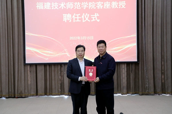 3月15日下午,我校在图书馆报告厅举行客座教授聘任仪式,聘任福建省工艺美术协会副会长、福州市木雕行业协会首任会长、省工艺美术大师陈忠担任文化传媒与法律学院客座教授。校长廖深基为陈忠副会长颁发客座教授聘书并佩戴校徽。人事处处长,文化传媒与法律学院党政负责人、专业主任及师生代表参加聘任仪式。