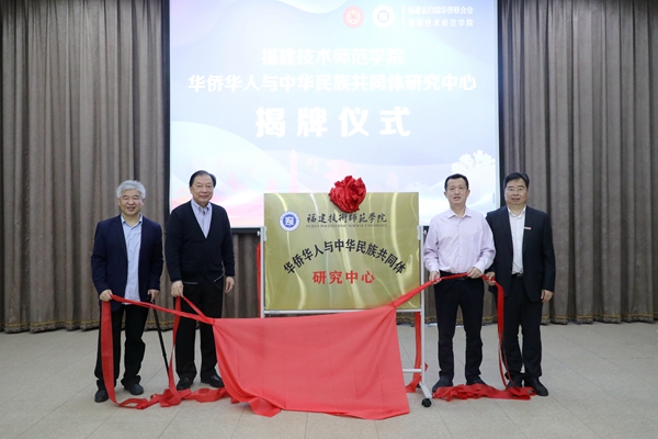 会上,陈式海主席、林宏修董事长和赖海榕书记、廖深基校长共同为我校“华侨华人与中华民族共同体研究中心”揭牌。
