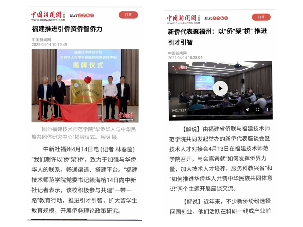 中国新闻社对本次活动进行了全媒体采访,相关文字、图片和视频新闻向海内外同步播发。(党政办公室 党委宣传部 党委统战部 国际合作与交流处)