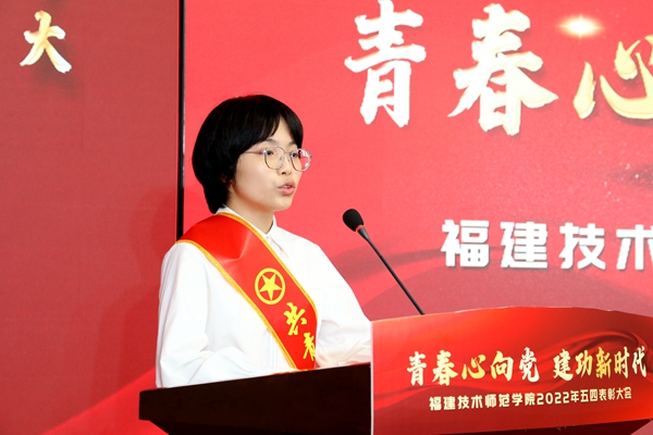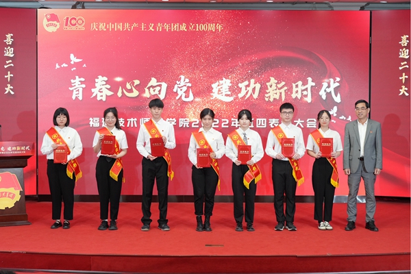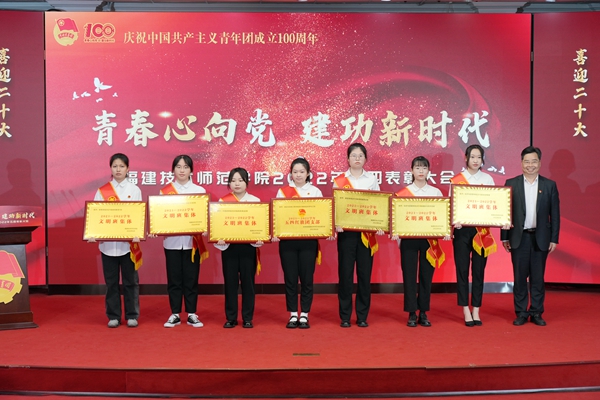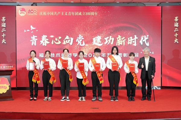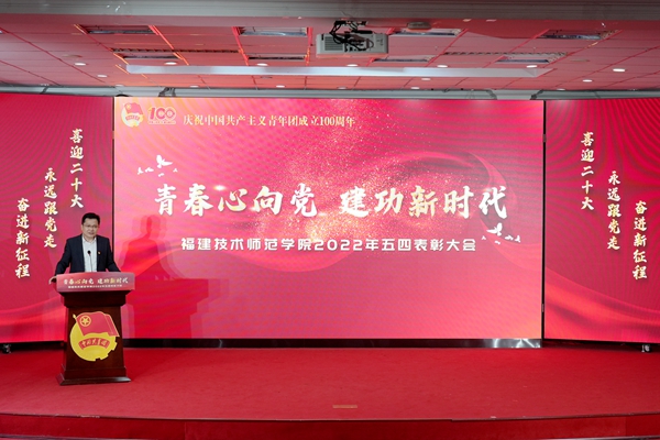 5月12日上午,我校在五马山校区科学楼学术报告厅举行“青春心向党 建功新时代”2022年五四表彰大会。校领导赖海榕、廖深基、张翼、陈志勇、商光美出席大会,大会由校党委副书记林海峰主持。党政办公室、组织部、宣传部、统战部、学生工作部、安全保卫处(武装部)主要负责人,各学院党委主要负责人、团委负责人、辅导员及受表彰学生代表在主会场参加,各学院设分会场,福建技术师范学院团委微信视频号全程网络直播。