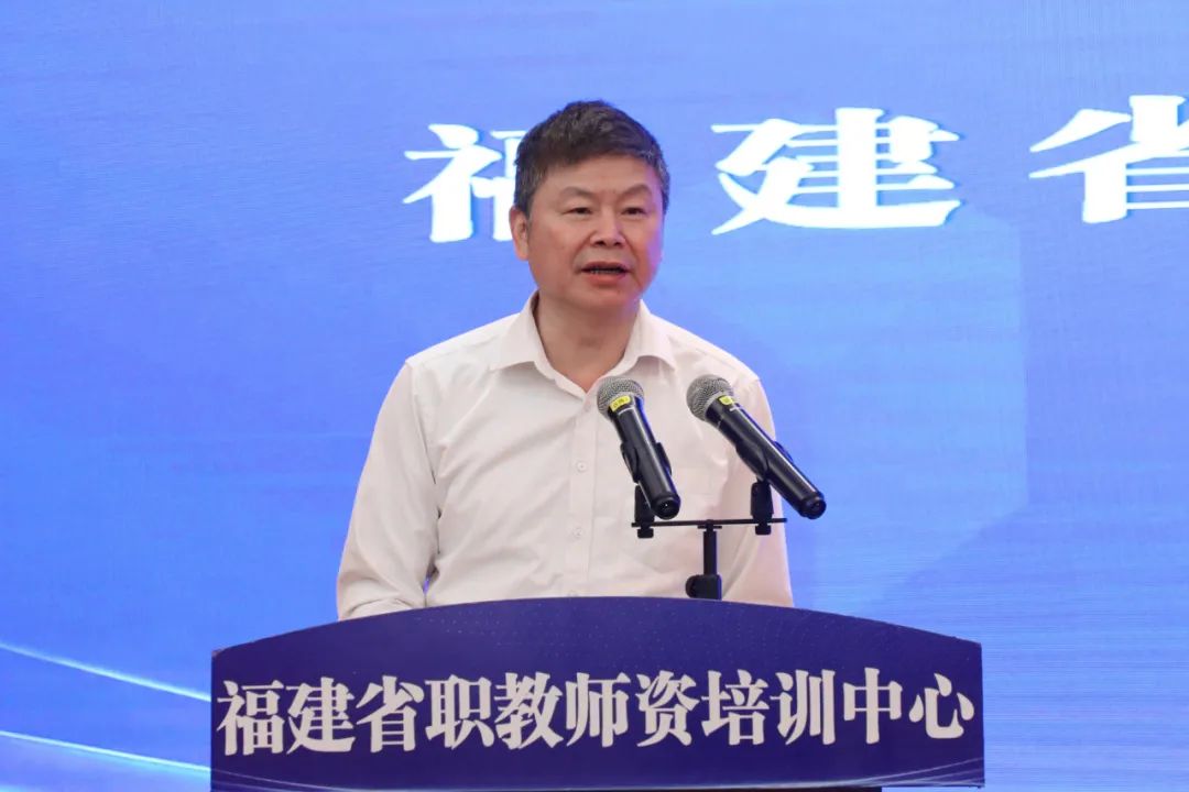 陈明庆代表省委教育工委、省教育厅向中心成立表示热烈祝贺。他指出,作为我省唯一一所定位培养职教师资的本科高校,福建技术师范学院在我省构建高质量职业教育体系中具有重要的作用。依托福建技术师范学院设立省职教师资培训中心,是省委教育工委、省教育厅从优化我省职教师资培训机制、强化我省职教师资队伍建设、推动我省职业教育高质量发展作出的重大部署安排,将为我省职业教育提质培优注入新的动力、增添新的活力。他对中心建设提出三点要求。一要高标准,推进中心规范化建设。要坚持“软硬件”两手都要抓、两手都要硬,持续统筹校内外资源,强化配备保障,健全完善中心管理和运行制度,加快智库建设,制定发展规划,不断提高中心服务和管理能力。二要敢创新,推进师资培训提质增效。要充分继承教师教育传统,发挥职业教育特色鲜明的优势,协助省教育厅统筹职教师资培训。要坚持效果导向,积极引入产业要素、企业资源、能工巧匠,严格把控师资培训质量,擦亮职教师资培训中心这张“金名片”。三要善结合,推进师资培养培训一体化发展。学校要提高站位,深入了解我省职教师资的现状和需求,善于在承训实践中总结教师培养规律,以训促教、以训促育,调整优化学科、专业结构布局,不断提高职教师范专业办学质量,构建职教师资职前职后一体化培养培训新格局。