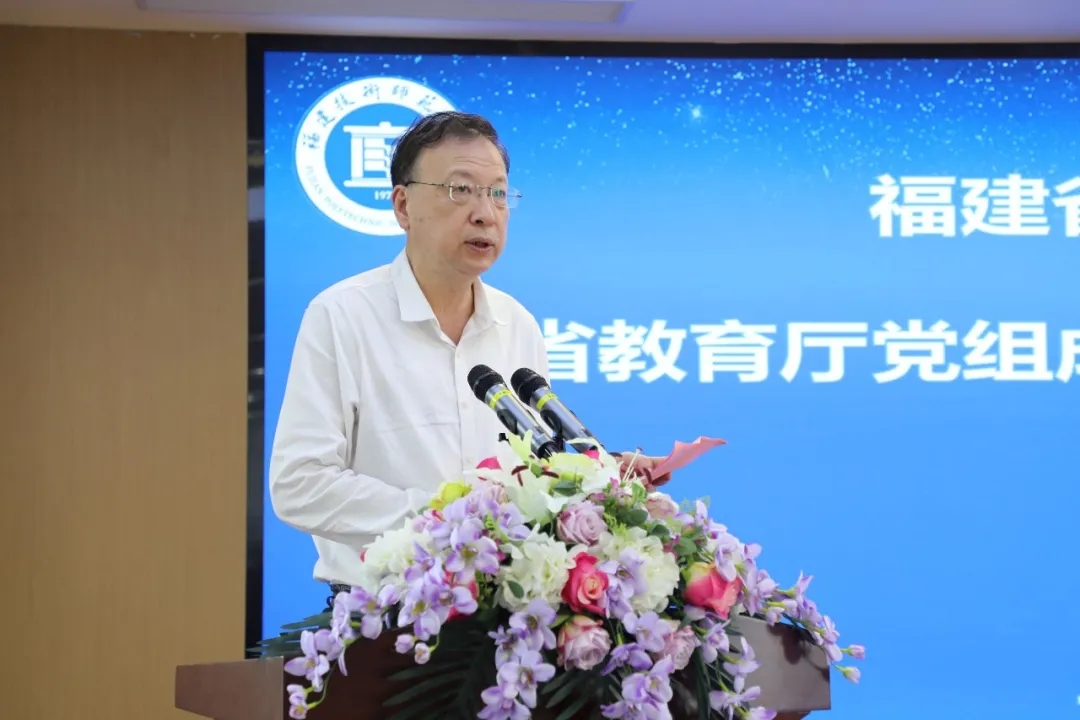 福建技术师范学院校长、福建省职业教育教师发展联盟理事长廖深基致辞。他表示,在福建省教育厅的大力支持下,福建技术师范学院正大力推进省职教师资培训中心、省职教教师发展联盟、附属校、基地校、合作校等建设,努力推动形成人才共育、师资共建、资源共享的职教发展体系和格局,助力福建职教高质量发展。他指出,将福建理工学校纳入福建技术师范学院中职基地校,是福建省教育厅加快构建特色现代职业教育体系的先行举措。学校将以基地校福建理工学校揭牌成立为契机,深入贯彻落实习近平总书记关于职业教育的重要指示精神,认真落实《职业教育法》,按照福建省委、省政府的要求,发挥定位优势和政策优势,全面指导和支持基地校福建理工学校加快高质量发展,着力建设成为教师加快成长的重点基地、校校资源共享的实践基地、产教融合的创新基地、人才贯通培养的实验基地、专业创新发展的先行基地、培养质量提升的示范基地,助力打造形成具有中国特色的现代教育体系“福建样板”。他希望基地校福建理工学校抢抓机遇、乘势而上,继续发挥好福建省中职教育改革发展排头兵作用,为福建经济社会发展作出新的更大贡献。