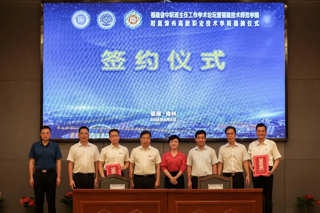 8月2日,福建技术师范学院附属漳州高新职业技术学校揭牌仪式在漳州举行。我校校长廖深基、副校长陈志勇,漳州市人民政府副市长余向红,漳州市委教育工委书记、市教育局党组书记、局长黄江辉,漳州市委高新技术产业开发区党工委书记苏孝道,漳州高新职业技术学校党委书记、校长赵为船等出席了揭牌仪式。