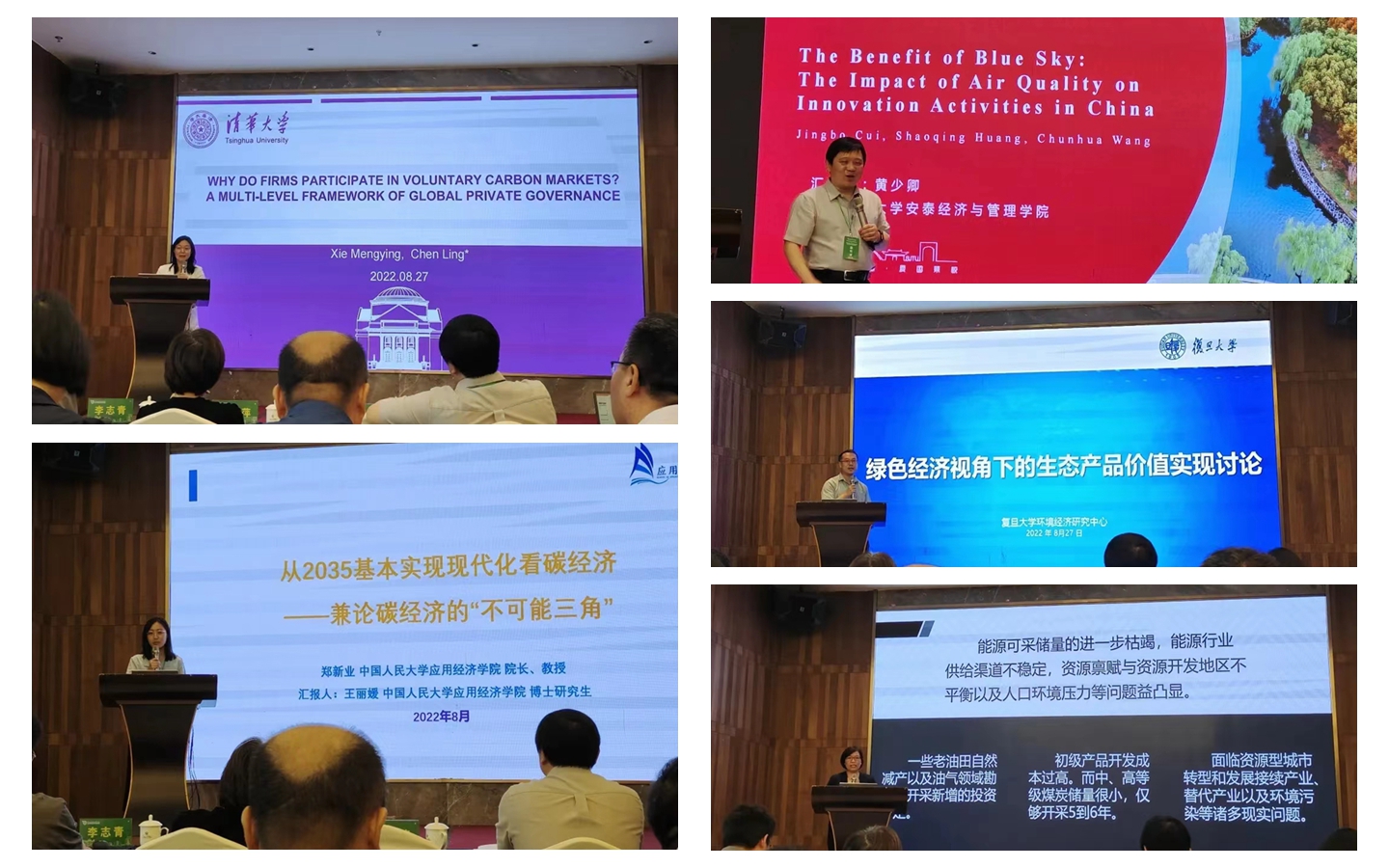 会议期间,清华大学公共管理学院副教授陈玲、中国人民大学应用经济学院博士研究生王丽媛、上海交通大学安泰经济与管理学院教授黄少卿、复旦大学环境经济研究中心副教授刘瀚斌和我校经济与管理学院副教授张兰花等学者分别作了《企业为何参与自愿碳市场?一个全球私人监管的多层次分析框架》《从2035基本实现现代化看碳经济——兼论碳经济的“不可能三角”》《The Benefit of Blue Sky: The Impact of Air Quality on Innovation Activities in China》《绿色经济视角下的生态产品价值实现》《做优绿色经济,厚植发展优势:日本、印尼、福建的绿色发展比较》等学术报告。