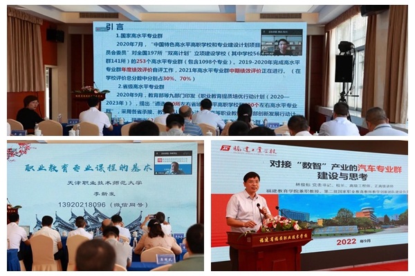 签约揭牌仪式后,福建省职业教育教师发展联盟专业建设指导委员会学术论坛开讲。二级教授、管理学博士、国家督学、国家教材委员会专家委员会委员、国家“双高计划”项目建设咨询专家委员会委员、陕西省有突出贡献专家崔岩,天津职业技术师范大学职业教育教师研究院副研究员、教育部职业院校教师素质提高计划项目管理办公室副主任李新发,福建省职业教育教师发展联盟专业建设指导委员会主任、福建省工业学校校长林俊标等3位专家学者,分别作了《创新高水平专业群建设路径》《职业教育专业课程建设的基本逻辑》《对接“数智”产业的汽车专业群建设与思考》等专题报告。