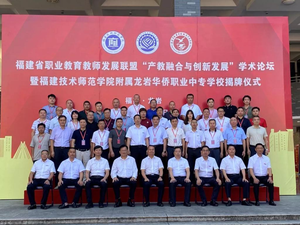 9月28日上午,福建省职业教育教师发展联盟“产教融合与创新发展”学术论坛暨福建技术师范学院附属福建省龙岩华侨职业中专学校揭牌仪式在福建省龙岩华侨职业中专学校举行。我校校长、福建省职业教育教师发展联盟理事长廖深基,副校长商光美,龙岩市人民政府党组成员、副市长廖深洪,新罗区人民政府副区长林峰,新罗区教育局党组书记、局长陈金堂,福建省龙岩华侨职业中专学校党委书记马锦等出席签约揭牌仪式,并共同为附属校揭牌。会议通过线上线下相结合的方式进行。广东省机械技师学院党委书记冯为远,福建省龙岩华侨职业中专学校校长赖永贵,省内外职业教育研究专家代表、省职业教育教师发展联盟会员单位代表、企业代表参加相关活动。龙岩市教育局党组成员、副局长温寿春主持揭牌仪式。