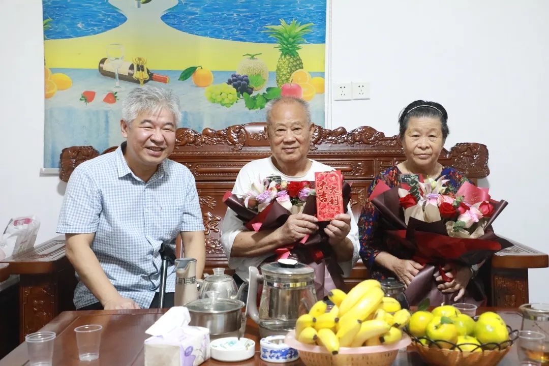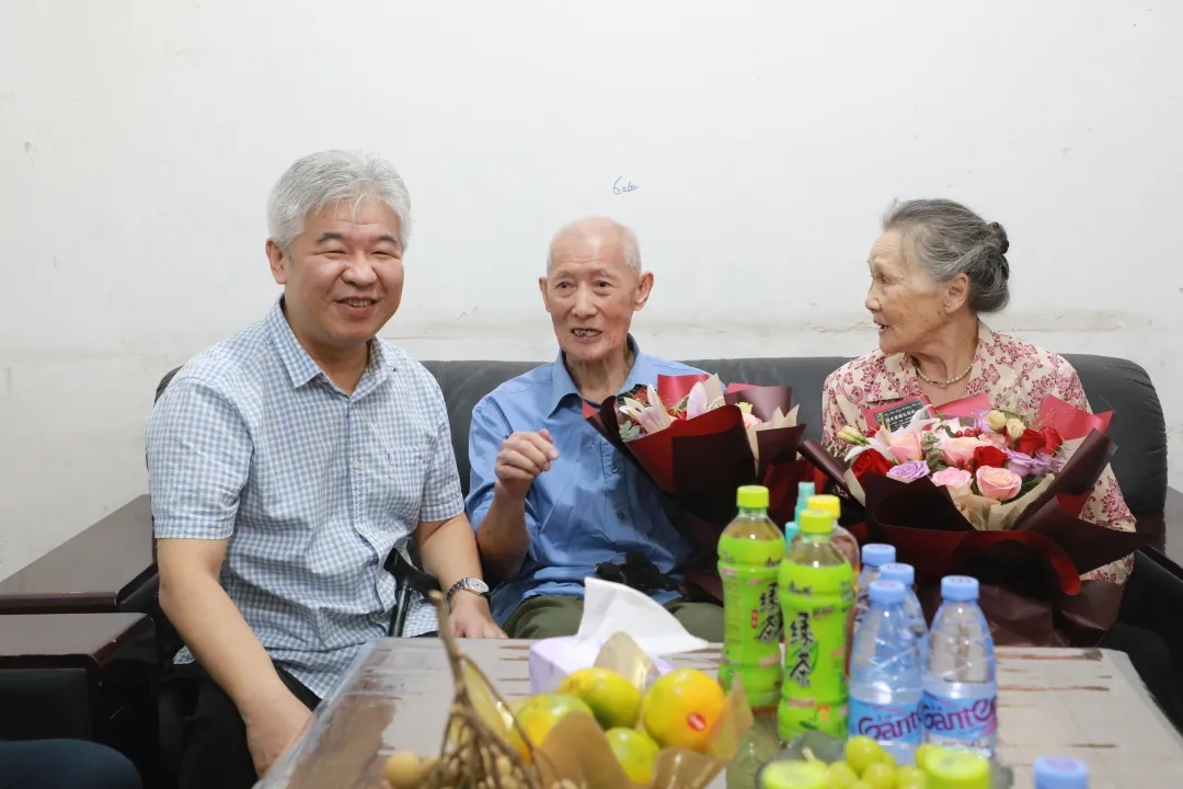 在重阳节来临之际,校领导赖海榕、廖深基、林海峰、张翼、商光美走访慰问我校90周岁老寿星、金婚钻石婚等退休教职工代表,并代表学校党委、行政向全体退休老同志致以亲切的节日问候和美好的祝福!