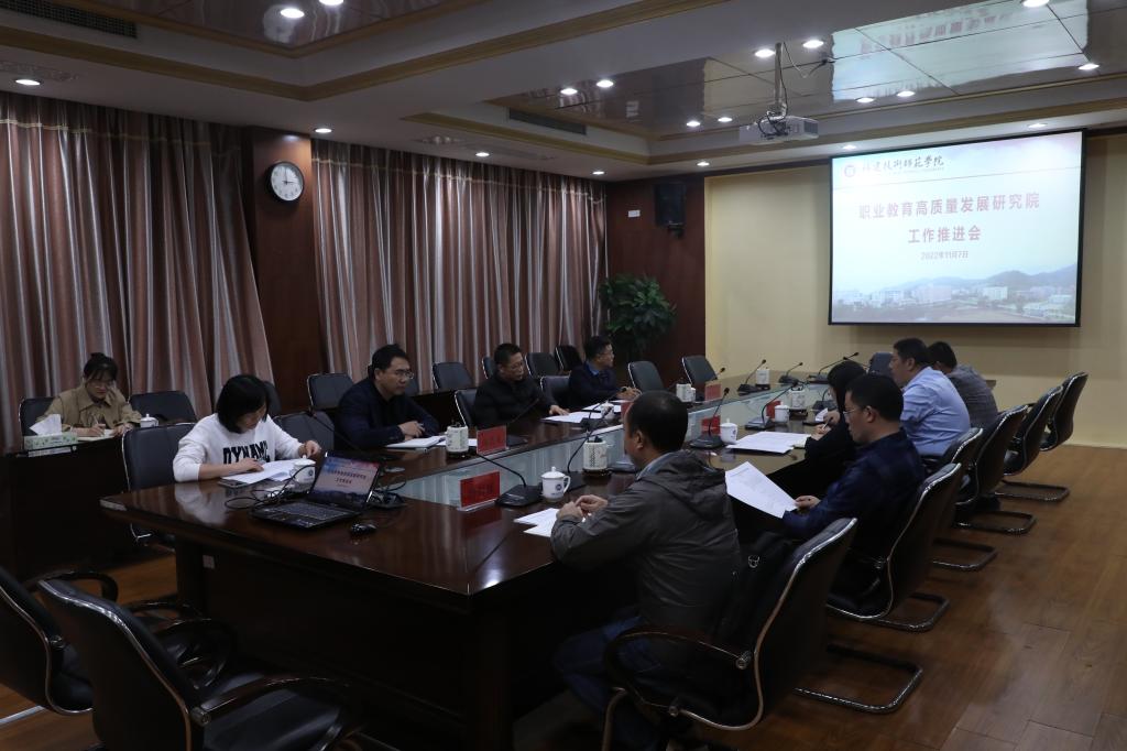 11月7日,学校在五马山校区科学楼综合会议室召开职业教育高质量发展研究院工作推进会。副校长陈志勇主持会议并作了讲话。教务处、科研处、省职教师资培训中心、职教办、研究院的主要负责人及相关人员参加会议。