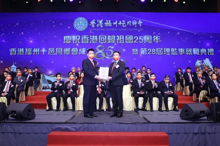 11月5日,香港福州十邑同乡会在香港会议展览中心隆重举行香港福州十邑同乡会成立85周年暨第28届理监事就职典礼。我校发展顾问陈元寿先生荣膺第28届香港福州十邑同乡会监事长。在就职典礼上,福建省委统战部李文慎副部长为陈元寿先生颁发监事长选任状。包括香港中联办社联部副部长黎宝忠、香港特别行政区财经事务及库务局副局长陈浩濂、政制及内地事务局副局长胡健民、商务及经济发展局副局长陈百里,以及全国政协委员、香港福建社团联会主席吴换炎和香港福州社团联会主席俞培俤、香港福州十邑同乡会永远荣誉会长许宝月在内的近400名嘉宾共同见证典礼。