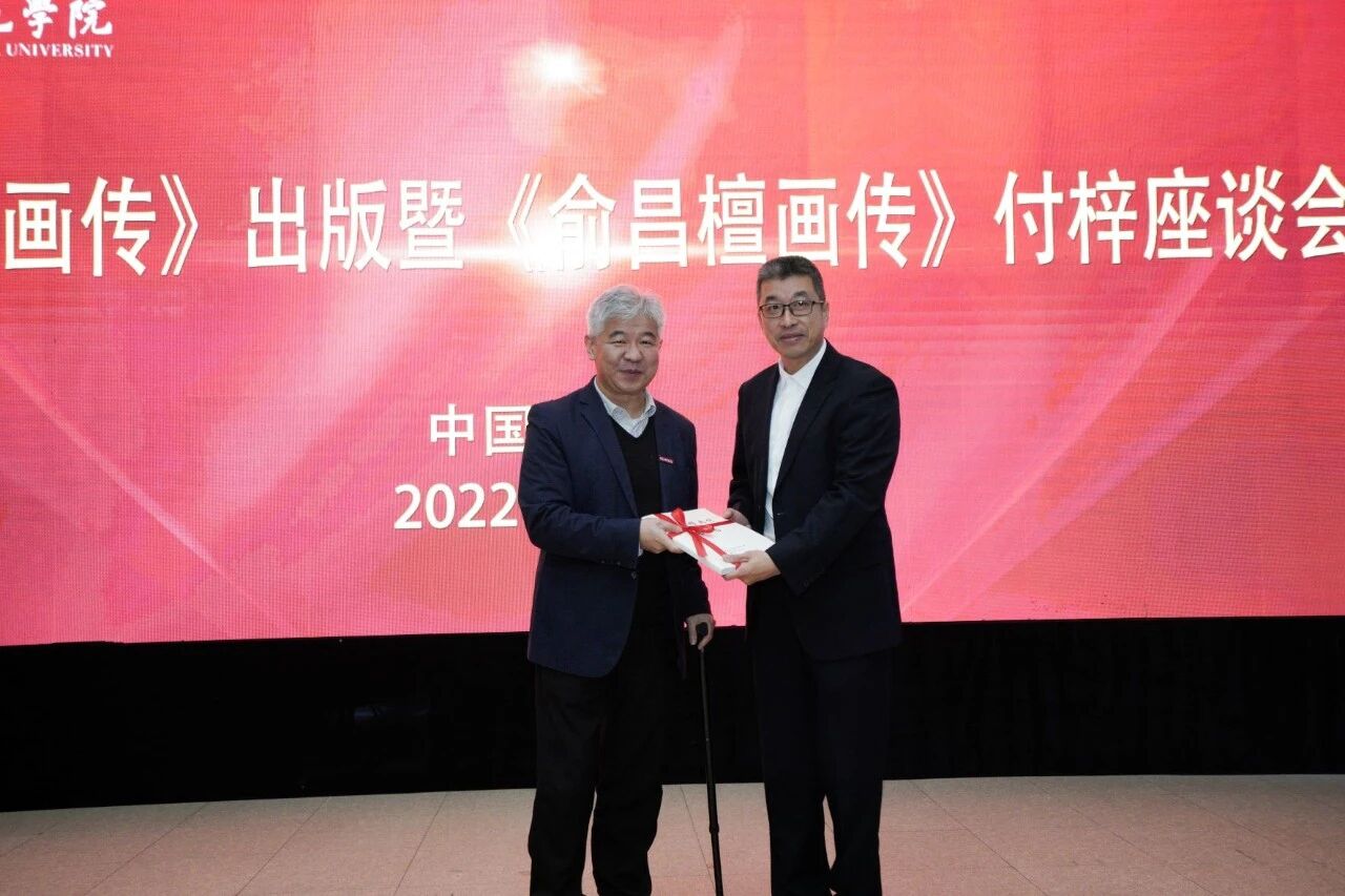 赖海榕书记向陆耀东助理正式交付《俞昌檀画传》书稿。