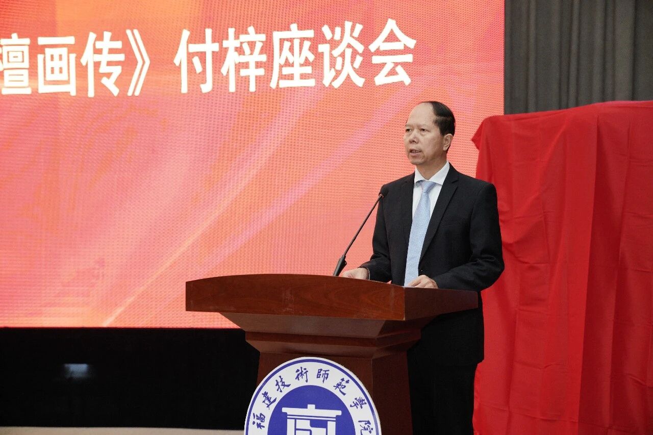 李清华副主席代表福州市侨联致辞。他指出,陈子兴先生、俞昌檀先生堪称老一辈华侨典范,他们爱国重教的赤子情怀让我们感动。学校位于著名侨乡福清,是一所侨缘特色鲜明的高校,本次组织编撰2本画传,充分体现了学校对老一辈侨领侨贤爱国爱乡、无私奉献精神的铭记与传承,也展示了学校承前启后、继往开来的情怀和决心。他希望学校传承爱国华侨精神,将侨缘特色转化为实业发展优势,为社会发展输送更多的职业教育师资和大国工匠,谱写福建高等教育发展新篇章。他表示,福州市侨联将积极探索新时代侨联+高校+校友会的工作新模式,汇聚侨界力量,助力学校人才培养与事业发展。