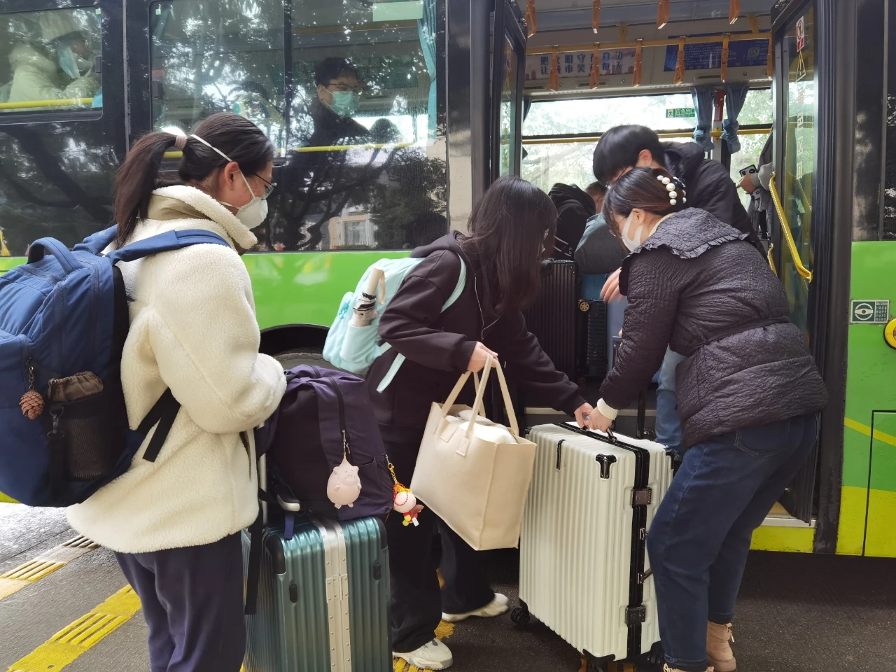 学校高度重视学生离校返乡工作。学校分别在石竹山校区和五马山校区则徐园、向高园等区域设置送站中巴停靠点。各学院认真采集统计乘车需求、汽车动车班次等信息;党委组织部、学生工作部、人事处组织党员干部志愿者到现场调度车辆,帮助返乡学生搬运行李,为同学们发放防护口罩,温馨提示出行安全;安全保卫处等为自驾而来的家长车辆有序疏导交通;党政办公室商函航空公司、动车站等协调学生改签、退票等事宜。部门、学院协调联动,精心组织,有序开展各项服务保障工作,为返乡学子提供安全、便捷、舒适的“一站式”服务。