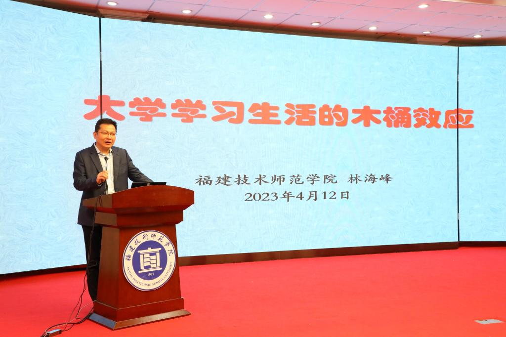 4月12日下午,校党委副书记林海峰在五马山校区科学楼学术报告厅为我校2023年“青马工程”骨干培训班暨团学干部培训班学员作了题为《大学学习生活的木桶效应》的辅导报告。校团委全体人员,各学院团委负责人,“青马工程”大学生骨干培训班全体学员,校、院团学干部代表共计200余人参加了学习。