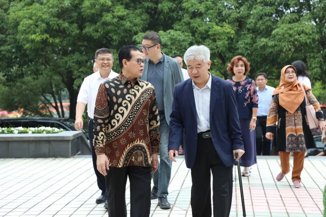 赖海榕书记对远道而来的专家和来宾表示欢迎。洛克明教授转达了印尼斗争民主党主席、第五任总统梅加瓦蒂阁下对赖海榕书记的问候。赖海榕书记也请洛克明教授转达他对梅加瓦蒂阁下的诚挚问候和美好祝福。双方共同回忆了2018年在梅加瓦蒂阁下官邸会面时的愉快场景。