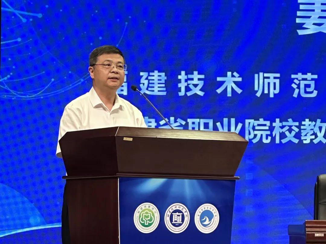姜兴山副校长代表学校致辞。他简要介绍了学校办学定位和基本办学情况,以及本次大赛承办工作情况。他表示,学校是全省唯一一所定位培养职业教育师资的本科高校。承办本次大赛,既是省教育厅对学校的认可和支持,也是学校的责任和使命。学校高度重视大赛承办工作,在省教育厅的关心指导下,充分依托福建省职教师资培训中心、省职业教育教师发展联盟等平台,加强组织领导,做好联系协调,并和湄洲湾职业技术院校通力协作,切实加强赛事服务和保障,着力提升赛事水平和质量。今后,学校将持续发挥定位和地域优势,助力提升我省职业院校教师教学能力、教学水平,为推动我省职业教育高质量发展贡献新的更大力量。