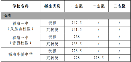 福清一中、侨中录取分数线